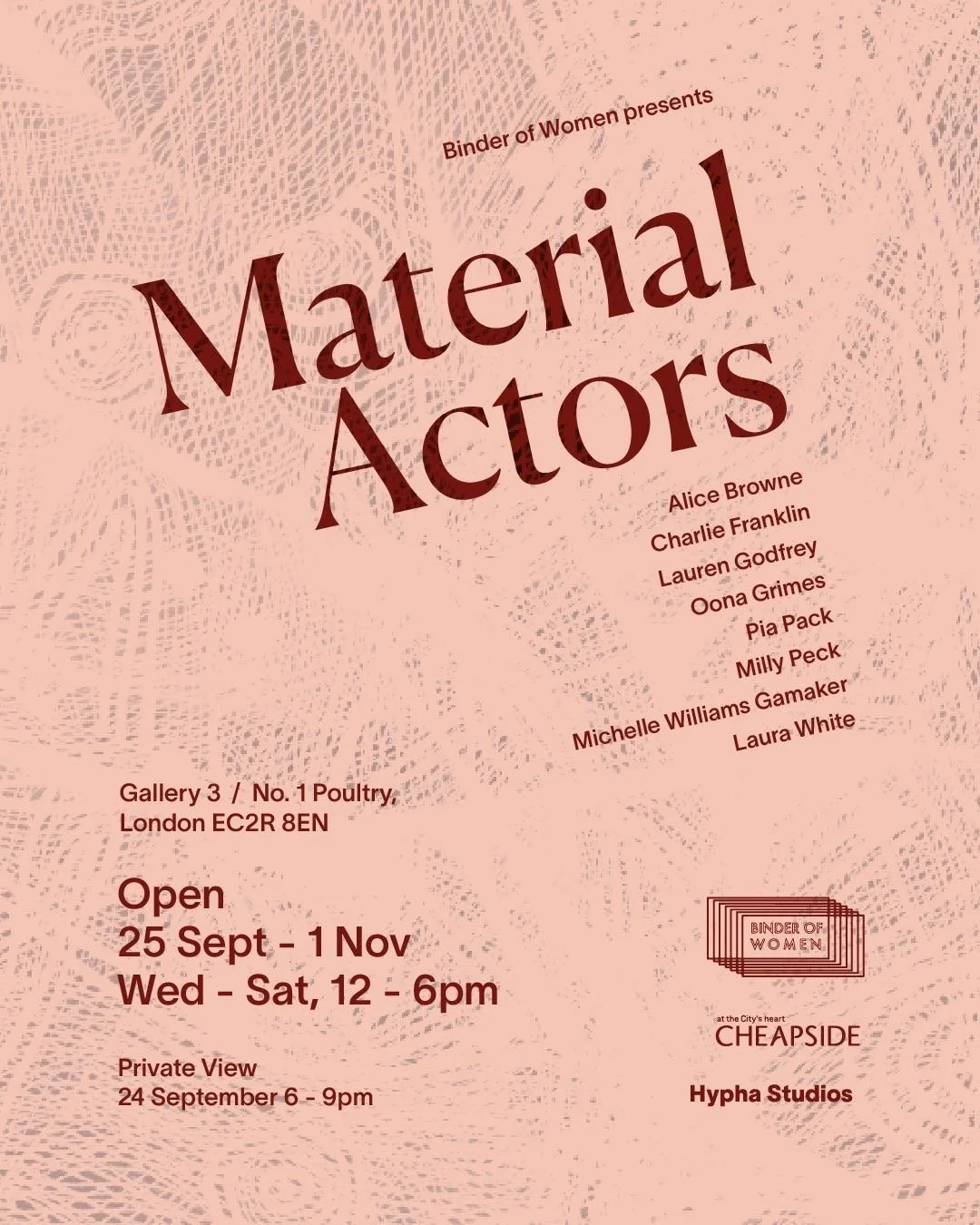 Binder of Women creates enduring links between artists at all stages of their careers, nurturing a collaborative and supportive spirit. We have extended this to the curation, bringing together existing members of the community and inviting new ones to join our evolving collective.
